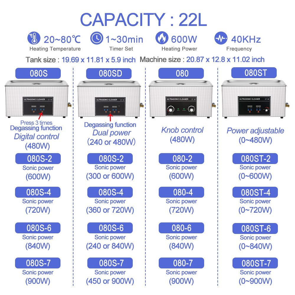 080 Series 22L Industrial Ultrasonic Cleaner | 40KHz Digital Control | 480W-900W-Cleaningsonic