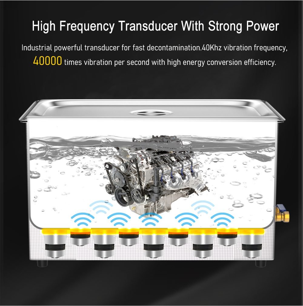 Uniform Sound Field Distribution: Precisely arranged transducers ensure consistent cleaning throughout the tank