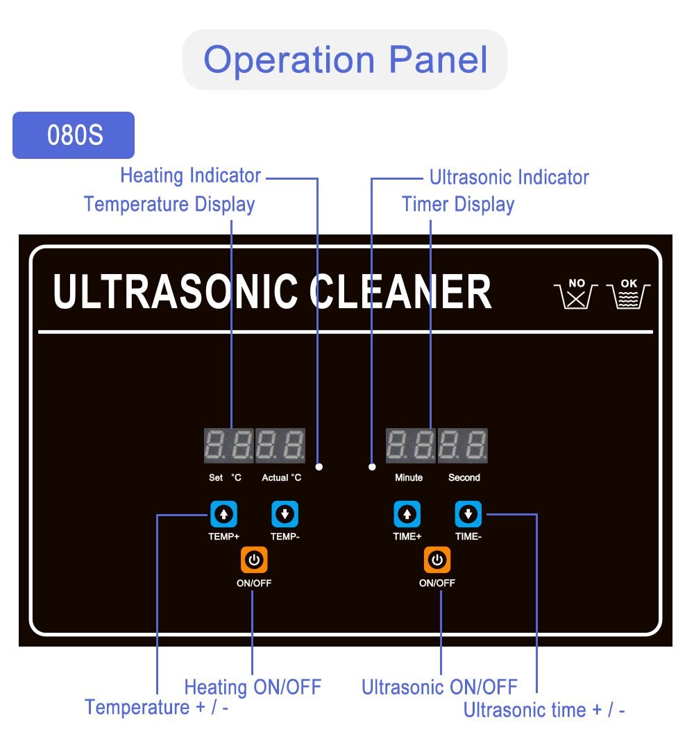 080 Series Industrial Ultrasonic Cleaning Machine - 40KHz Frequency | 22L Smart Digital Control | Global Power Options